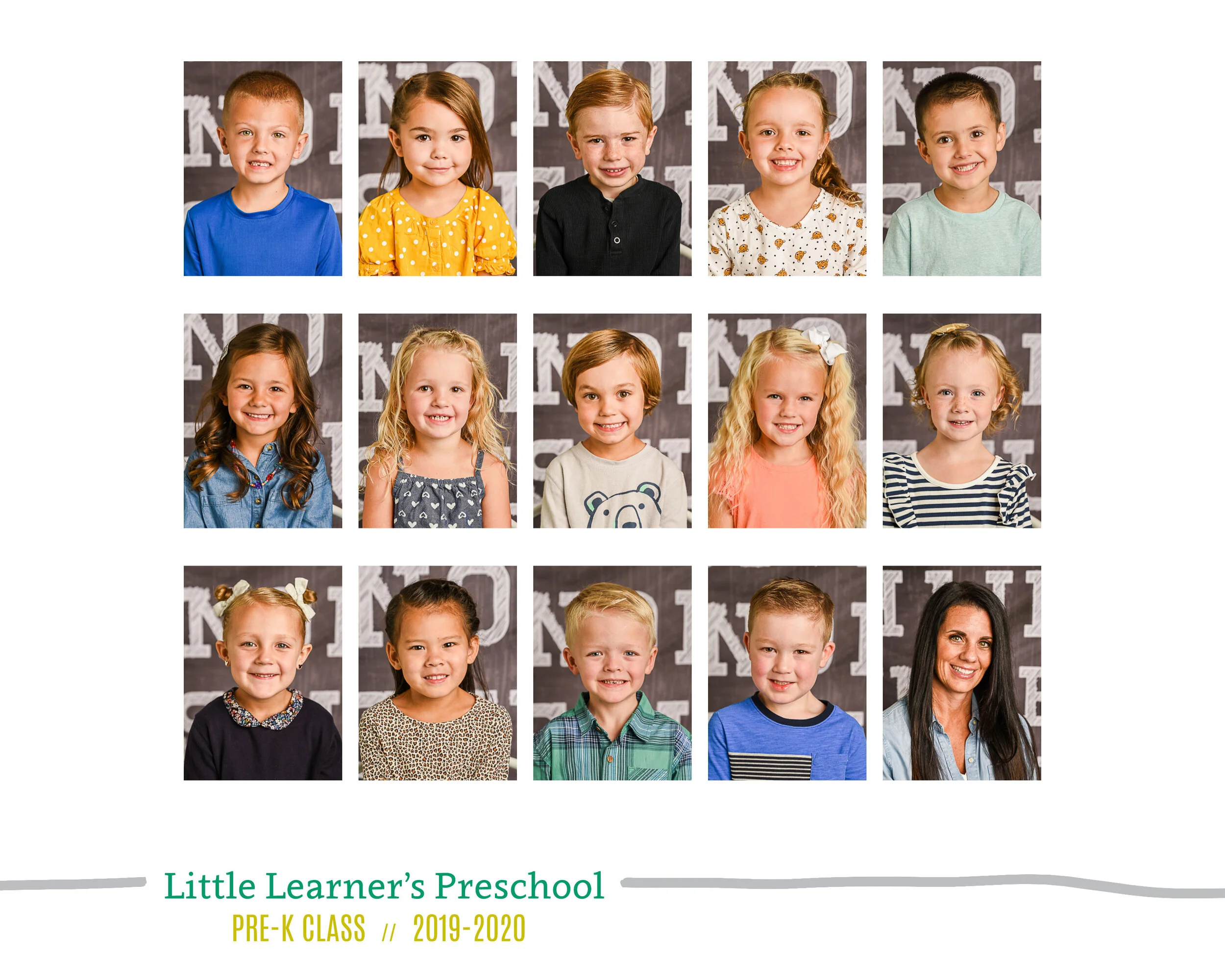 In most cases we do a collage of the class using a headshot of each student and teacher. The class picture will include the name of the school, each child’s name, the teacher(s) and the current year. You will receive a complimentary digital version of each class picture.